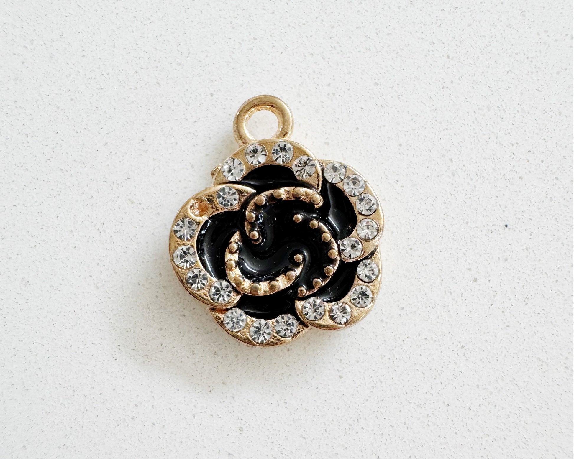 Black Diamonte Flower Charm
